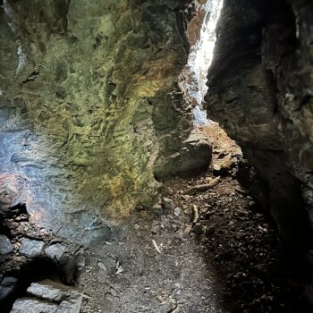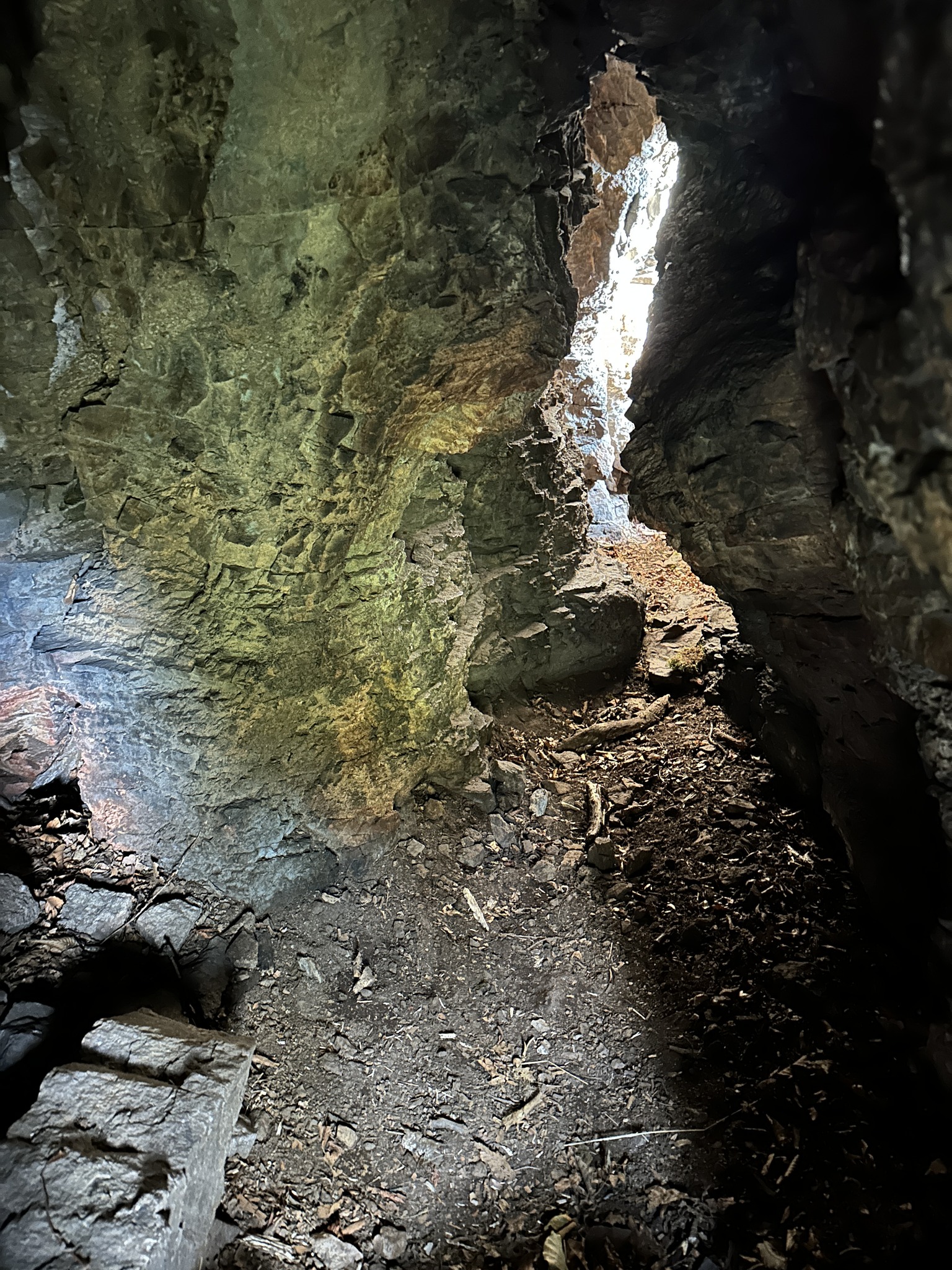 Vznikla v kremencoch 🪨 – tvrdých, nerozpustných usadených horninách, ktoré sú tvorené prevažne kremennými zrnkami. Ako je teda vôbec možné, že sa v takýchto odolných horninách vyformovala dutina? 🤔 Kľúč spočíva v prirodzenom puklinovom systéme. Hornina bola narušená vertikálnou puklinou a kolmo orientovanými plochami vrstvovitosti (tak ako boli pôvodne usadzované horniny). V mieste ich kríženia ❌ dochádzalo k intenzívnejšej erózii a vyvetrávaniu zŕn v hornine, čo postupne vytvorilo menší jaskynný priestor s dvomi otvormi.